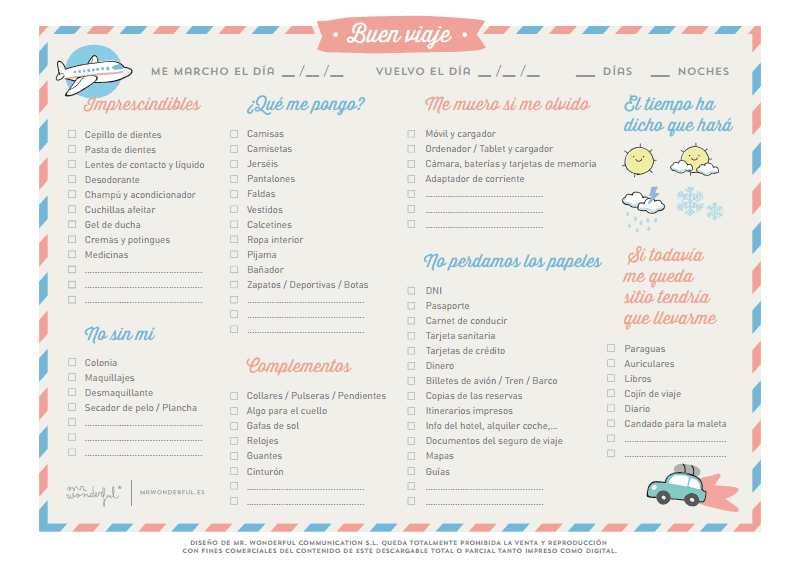 Y es que como «hacer la maleta puede ser un trabajo duro y conseguir que no se te olvide nada todavía más. Lo sabemos y lo padecemos. Por eso hemos preparado este descargable bonito donde los haya y muy, muy, muy útil con el que no se te pasará ni una y harás la maleta perfecta, sea cual sea tu destino.» – (muymolon)